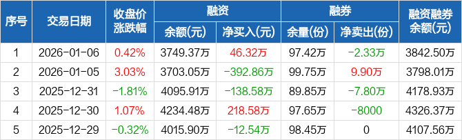 科创创业50ETF:融资净买入46.32万元,融资余额3749.37万元(01-06)