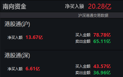 南向资金净买入超20亿港元
