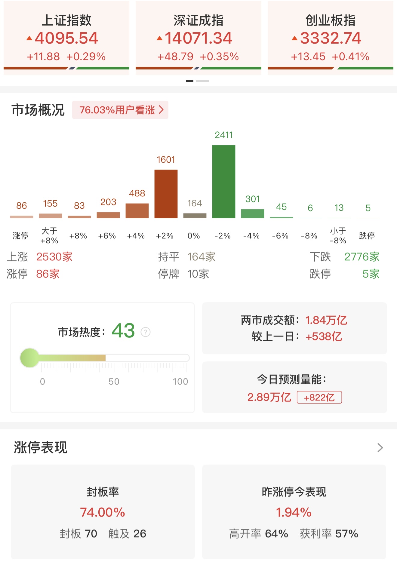 午评:沪指涨0.29%逼近4100点 两市半日成交1.84万亿