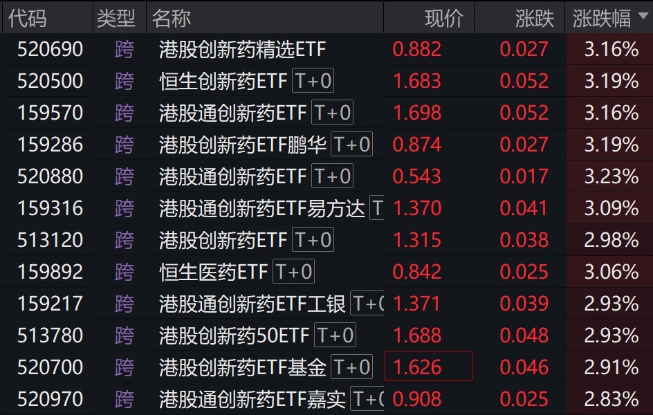 港股创新药概念股走强,相关ETF涨约3%