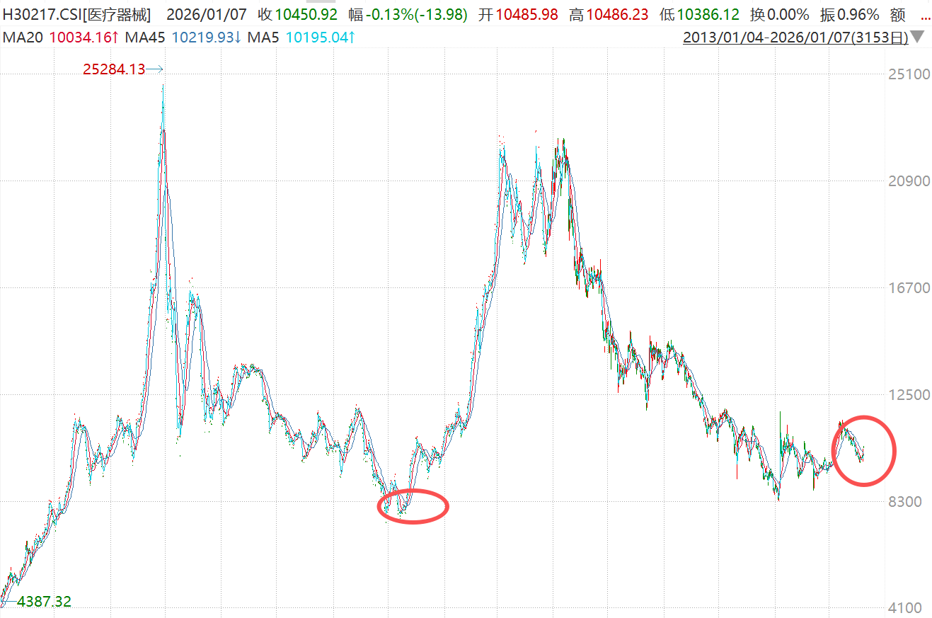 指数维度,医疗器械ETF(562600)跟踪的医疗器械指数脑机接口含量20.91%,在A股市场指数中含量最高,自2021年7月至今调整周期已达4年半,调整幅度超60%,价格已回到上一波行情启动位,具备风口初期,逢低布局的特征。