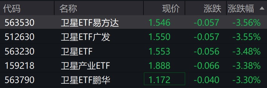 受盘面影响,卫星相关ETF跌超3%。