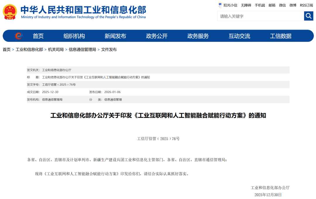《行动方案》指出,将以推动信息化和工业化深度融合为主线,以推动“人工智能+”在工业领域落地为着力点,深化工业互联网规模应用,巩固提升信息通信业竞争优势和领先地位,推动制造业加快迈向全球价值链中高端,为加快形成新质生产力、推进新型工业化提供有力支撑。
