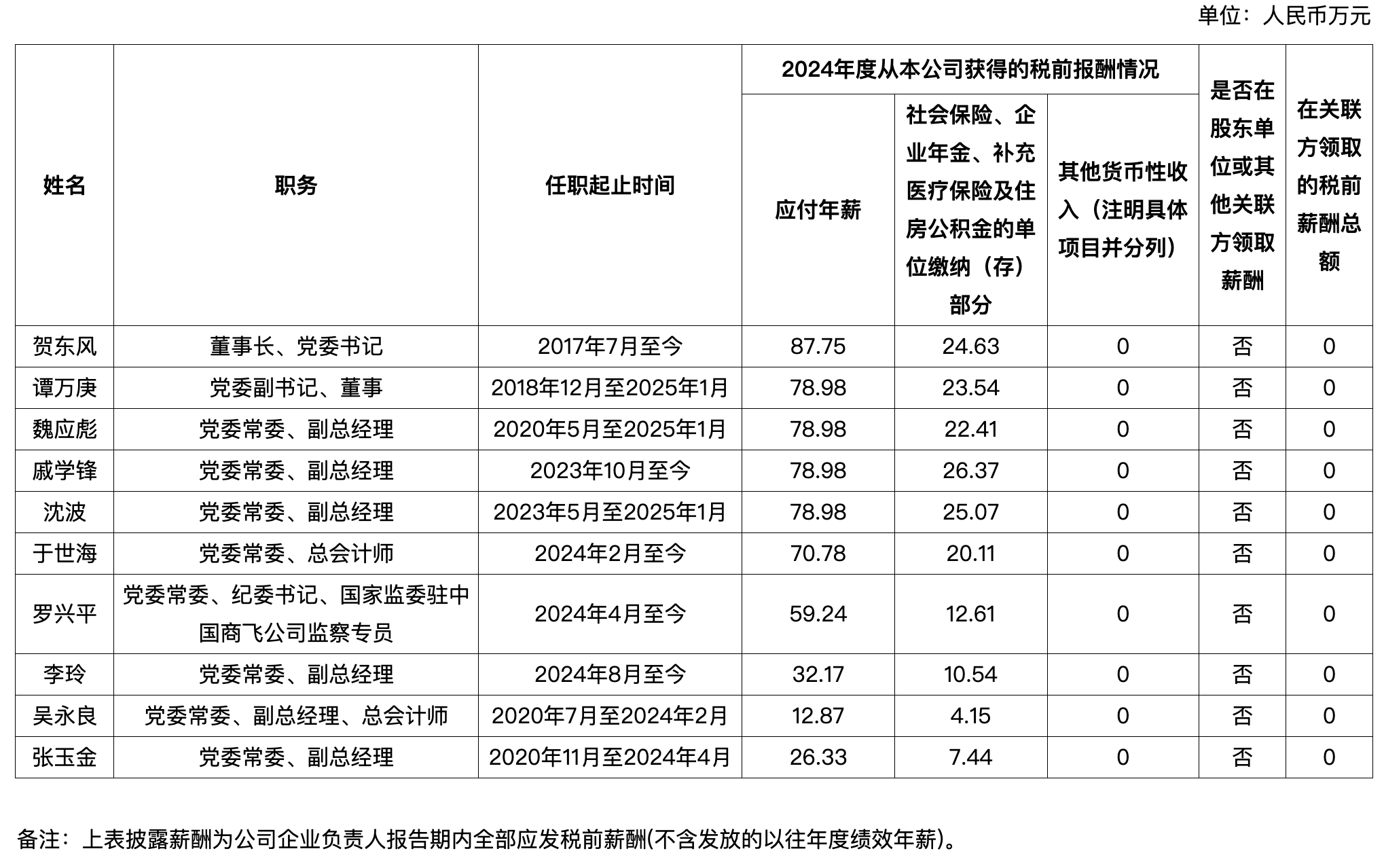 1月7日,中国商飞公司披露企业负责人2024年度薪酬情况,其中公司董事长、党委书记贺东风应付年薪87.75万元。