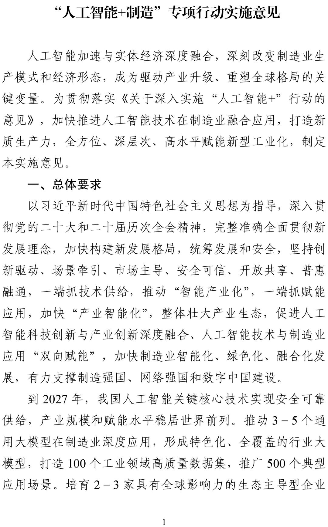 “人工智能+制造”重要部署来了!万字文件,信息量极大