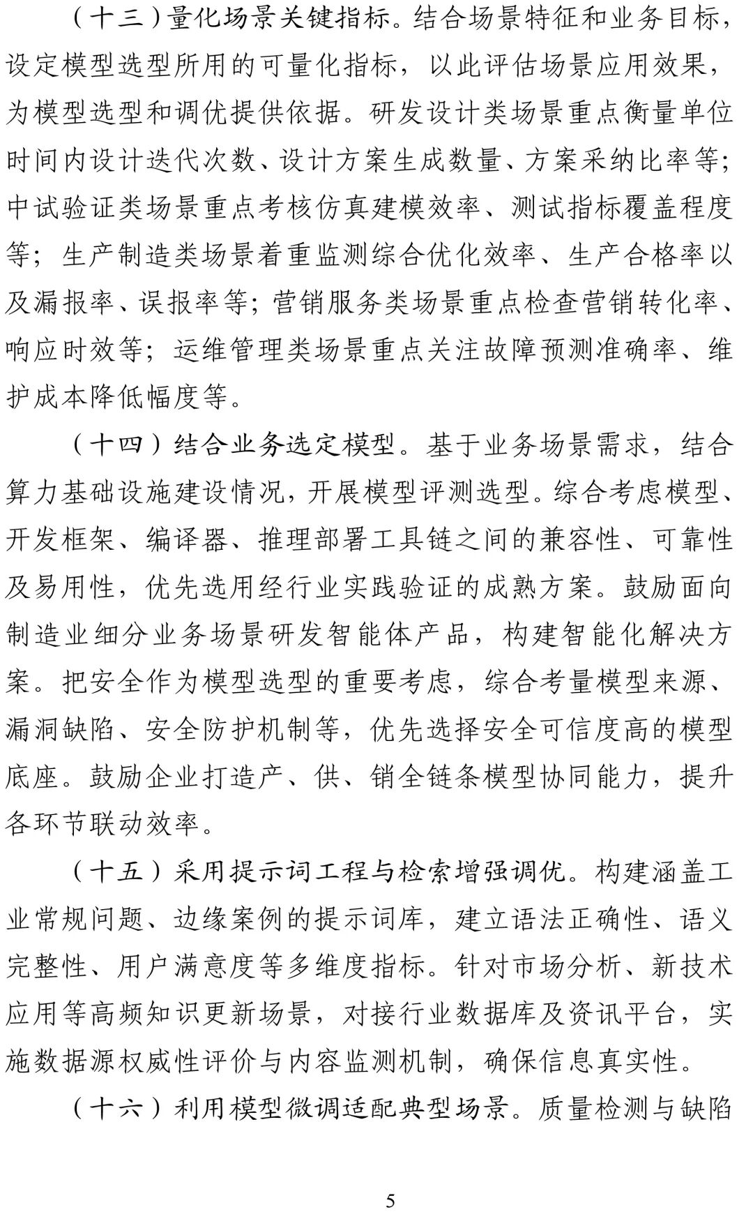 《意见》提出,到2027年,我国人工智能关键核心技术实现安全可靠供给,产业规模和赋能水平稳居世界前列。推动3—5个通用大模型在制造业深度应用,形成特色化、全覆盖的行业大模型,打造100个工业领域高质量数据集,推广500个典型应用场景。培育2—3家具有全球影响力的生态主导型企业和一批专精特新中小企业,打造一批“懂智能、熟行业”的赋能应用服务商,选树1000家标杆企业。建成全球领先的开源开放生态,安全治理能力全面提升,为人工智能发展贡献中国方案。