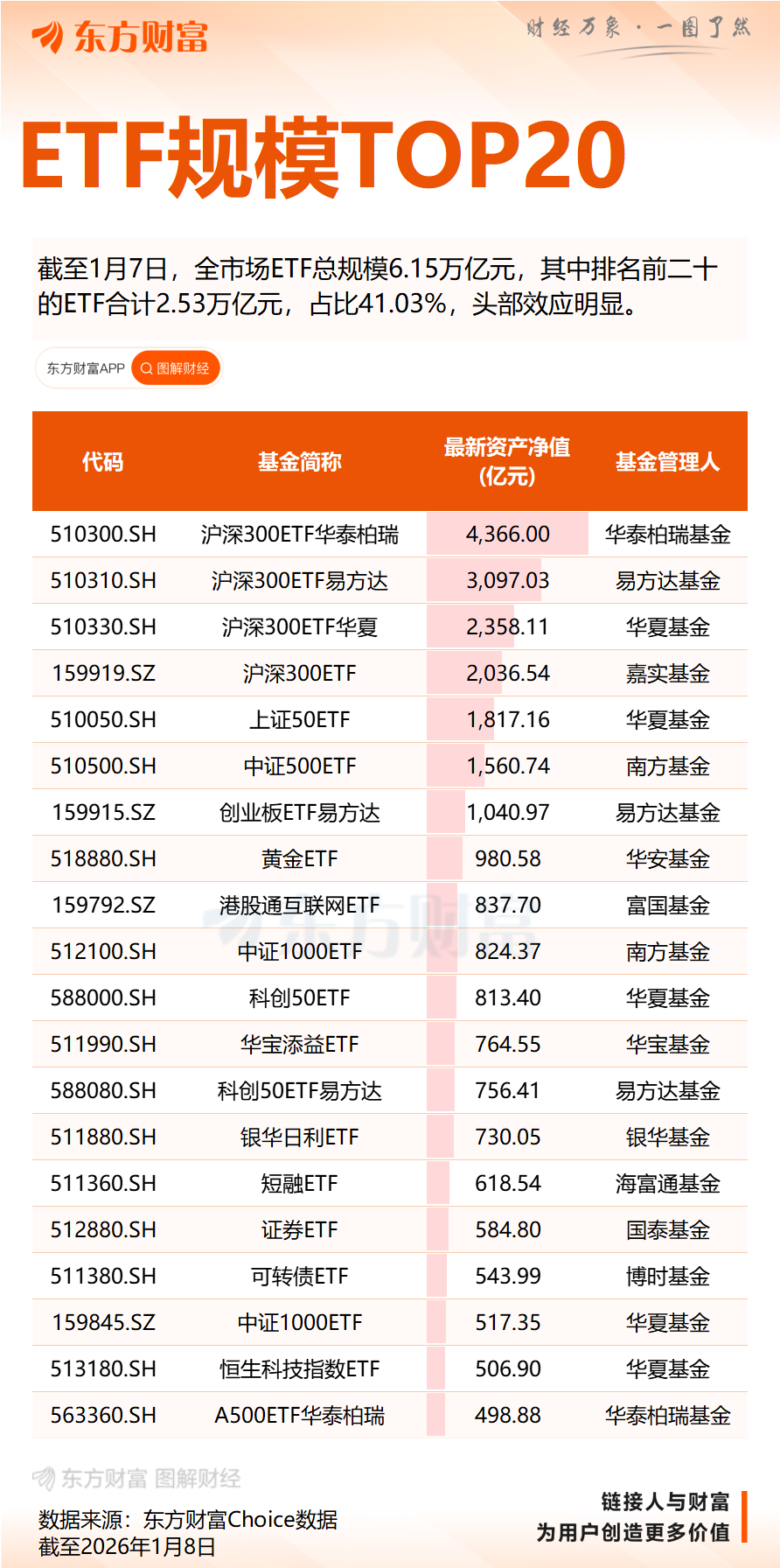 沪深300ETF华泰柏瑞最新规模该ETF最新规模为4394.4亿元,是全市场规模最大的股票ETF。此次更名是响应沪深交易所2025年11月发布的基金业务指南修订要求,根据要求,所有存量ETF须在2026年3月31日前完成场内简称规范化调整,简称中必须包含基金管理人信息。