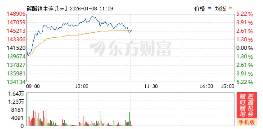1月8日,A股储能、锂电池板块早盘持续上涨,板块内多只个股涨停。碳酸锂期货价格一度逼近15万元/吨。