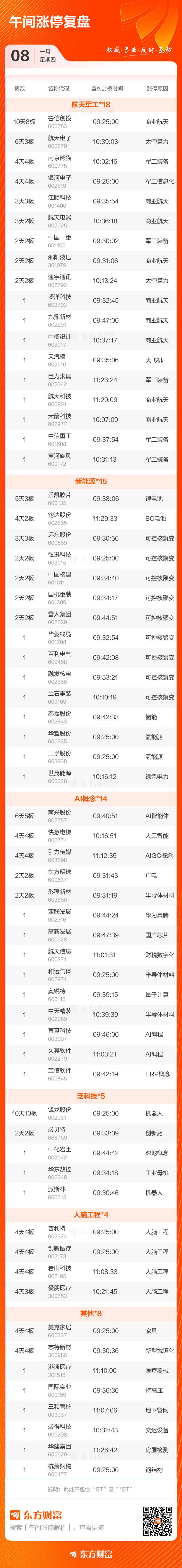 1月8日午间涨停复盘:80股涨停 鲁信创投10天8板