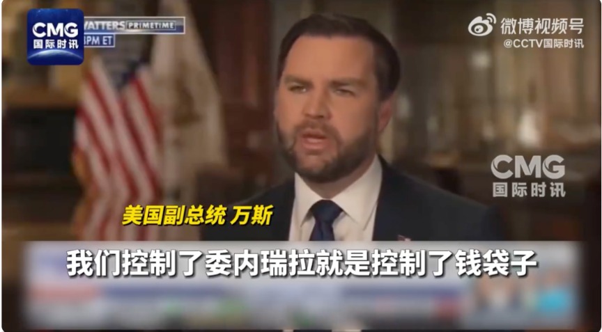 美国副总统万斯在接受美国福克斯新闻台采访时声称,委内瑞拉只有在“符合美国利益”的情况下才能出售其石油。相关节目于当地时间1月7日晚播出。在播前发布的采访片段中,万斯称,“我们控制着能源资源,我们告诉(委内瑞拉)政权:只要符合美国的国家利益,你们就允许卖石油;若不符合,就不准卖。”