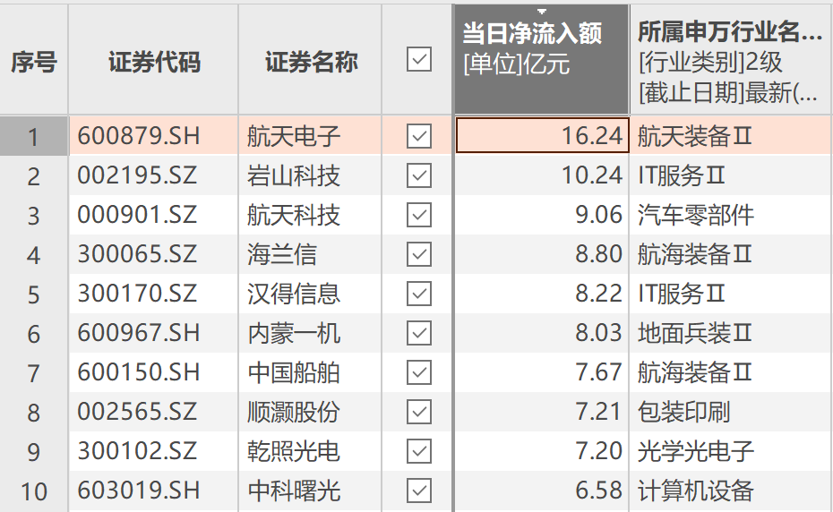 资金风向标 | 航天电子、岩山科技获大额资金流入