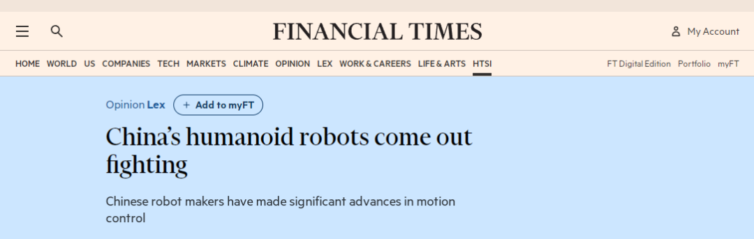 英国《金融时报》6日发表题为《中国人形机器人崭露锋芒》的文章。文章说,中国人形机器人在运动控制领域取得重大突破,展现了强劲竞争力。
