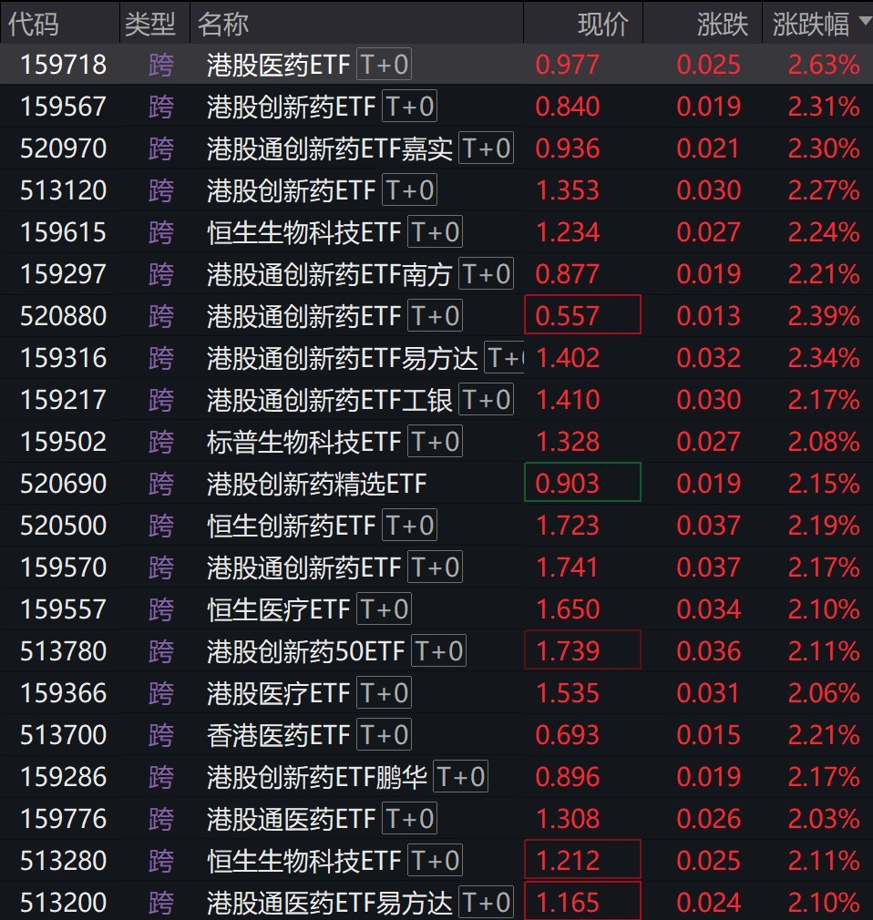 受盘面影响,多只港股医药相关ETF涨超2%。