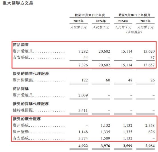 此外,报告期内,爷爷的农场还与广州盛成妈妈网络科技股份有限公司(由杨钢最终控制)及其控制的广州盛勤网络科技有限公司、吉安市盛成传媒有限公司存在关联交易。例如,报告期内,爷爷的农场对关联方的商品销售额为732.6万元、2060.2万元和1365.7万元,同时向关联方采购广告服务。