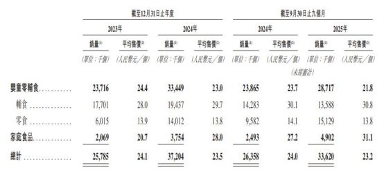 但每经记者注意到,婴童零辅食板块产品的平均售价却在报告期内出现下滑。具体来看,该板块的平均售价从2024年前三季度的23.7元/个降至2025年前三季度的21.8元/个。