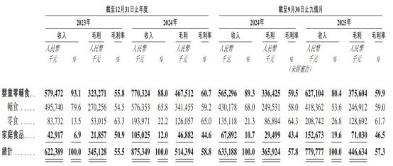 尽管公司2021年战略性进军家庭食品赛道,但从招股书披露的毛利率来看,公司报告期内家庭食品的毛利率相对婴童零辅食产品要低。以2025年前三季度为例,爷爷的农场婴童零辅食毛利率达59.9%,而家庭食品毛利率为46.5%。