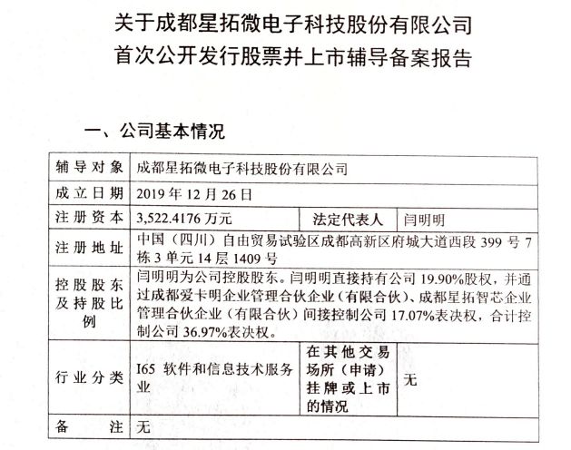 中国证监会网站显示,成都星拓微电子科技股份有限公司(以下简称“星拓微电子”)已于1月4日在四川证监局办理辅导备案登记,辅导机构为中金公司。这意味着,这家成立仅六年、近期入选四川省首批“种子独角兽”名单的芯片设计企业,正式开启了冲击A股的征程。在半导体行业处于周期性调整与AI结构性行情交织的当下,星拓微电子的上市进展,成为了观察西部硬科技企业资本化路径的一个最新样本。