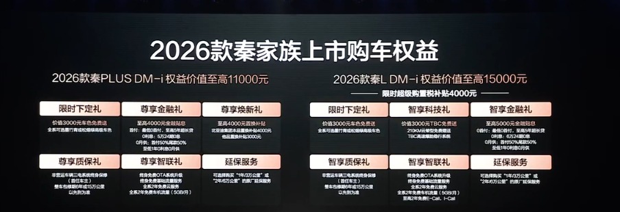 此外,2026款秦L DM-i限时兜底新能源汽车购置税,综合补贴后限时起售价为9.28万元。