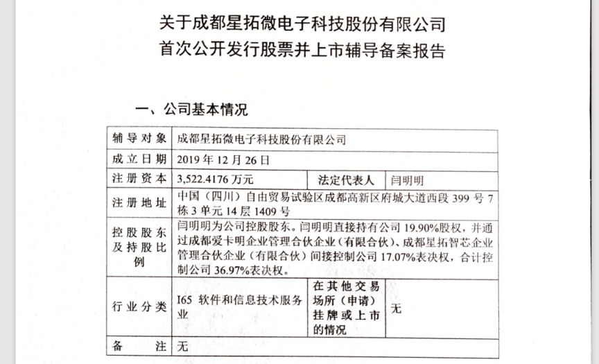 微成都报道据中国证券监督管理委员会官网最新披露,星拓微电子已于2026年1月4日在四川证监局完成辅导备案登记,辅导机构为中金公司。