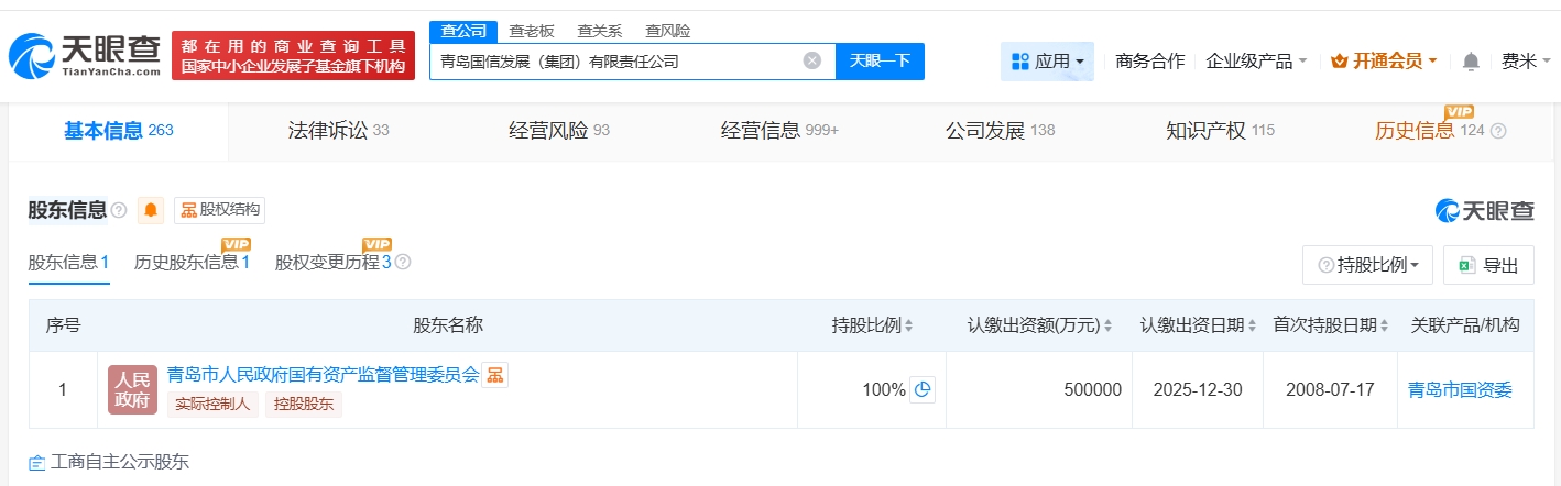 每经AI快讯,天眼查工商信息显示,近日,青岛国信发展(集团)有限责任公司发生工商变更,注册资本由30亿元人民币增至50亿元人民币,增幅约67%,同时,部分主要人员发生变更。青岛国信发展(集团)有限责任公司成立于2008年7月,法定代表人为刘鲁强,经营范围包括城乡重大基础设施项目投资建设与运营、政府重大公益项目的投资建设与运营等。股东信息显示,该公司由青岛市人民政府国有资产监督管理委员会全资持股。