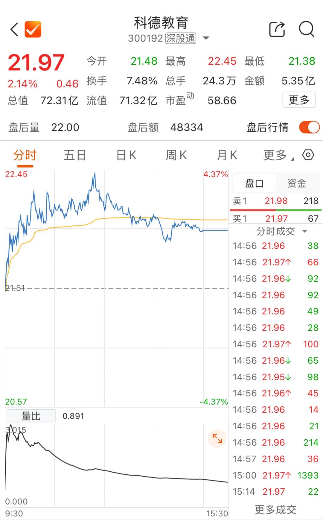 截至公告发出日,吴贤良直接持有公司9075万股股份,持股比例为27.95%,为公司控股股东、实际控制人。1月8日,科德教育收报21.97元/股,涨2.14%。