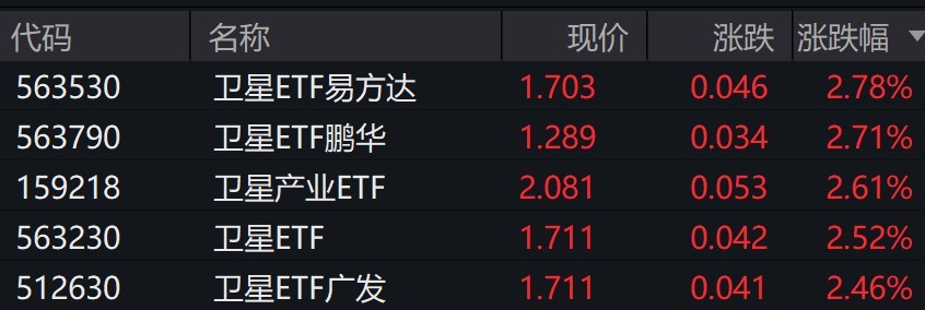 卫星概念股早盘走强,航天电子涨超9%,臻镭科技涨超7%,中国卫通涨超4%。