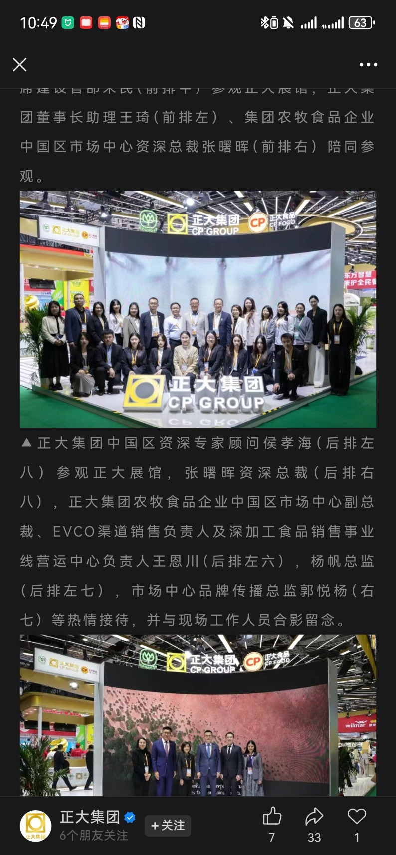 资料显示,正大集团成立于1921年,是泰籍华人谢易初先生创办的知名跨国企业, 在泰国亦称卜蜂集团。当前已发展成为以农牧食品、批发零售、电信电视三大事业为核心,同时涉足金融、地产、制药、机械加工等10多个行业和领域的多元化大型跨国集团公司。集团业务遍及全球100多个国家和地区,在全球有员工超过46万人,2024年全球销售额1022亿美元。