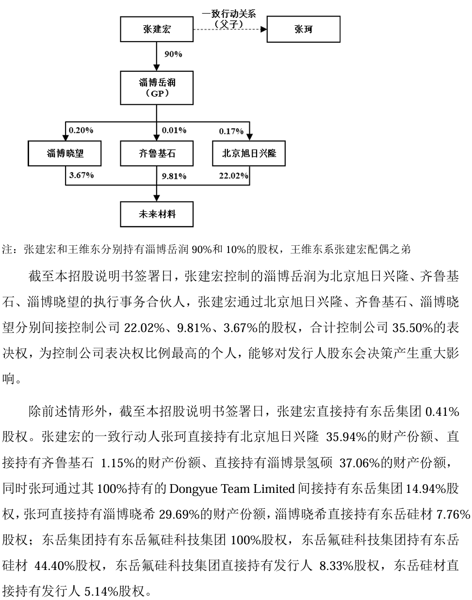 张建宏同时担任东岳集团(00189)董事长。公司在申报材料中强调,东岳集团股权分散、无实际控制人,二者在控制链条上相互独立,以此区分集团层面与发行人之间的关系。