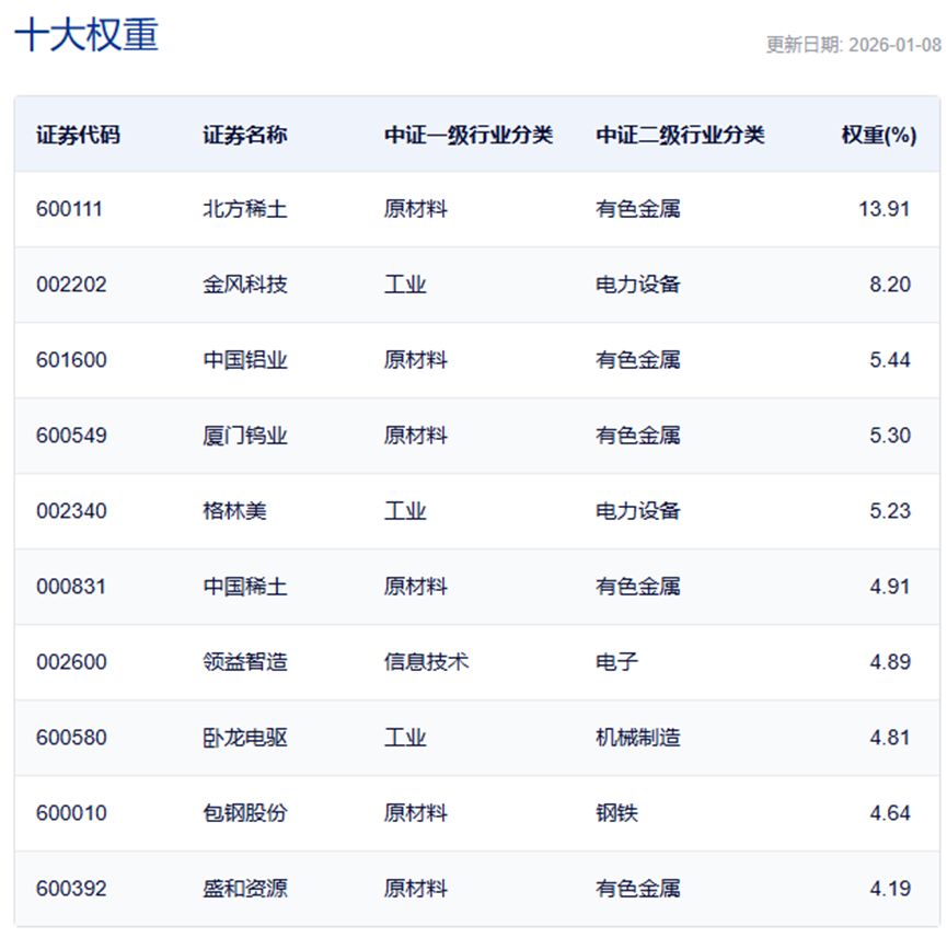 中证稀土产业指数主要权重股