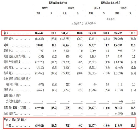 业绩方面,报告期内,桑尼森迪分别实现收入1.07亿元、2.45亿元和3.86亿元。同期,公司年/期内利润分别为-1992.1万元、-50.5万元和5195.9万元。其中,2025年前三季度已实现同比扭亏。