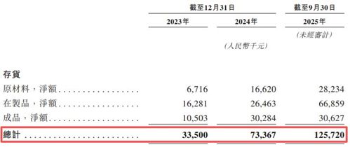 尽管2025年前三季度成功扭亏,但桑尼森迪的存货(主要包括原材料、在制品和成品)从2023年底的3350万元,激增至2025年9月底的1.26亿元,增幅276%。桑尼森迪称,主要由于其为应对不断增长的客户需求以及业务增长而扩大生产规模,导致原材料及在制品有所增加。