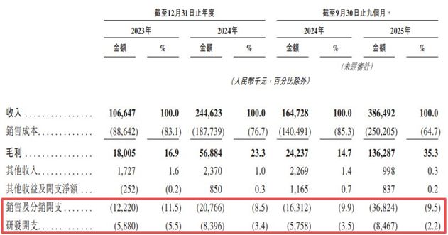 此外,桑尼森迪虽然在招股书中强调“技术驱动”,但招股书却显示公司的研发费率持续下滑。报告期内,公司的研发开支占总收入的比例在2023年为5.5%,在2025年前三季度为2.2%。相比之下,2025年前三季度的销售及分销开支占比达9.5%。