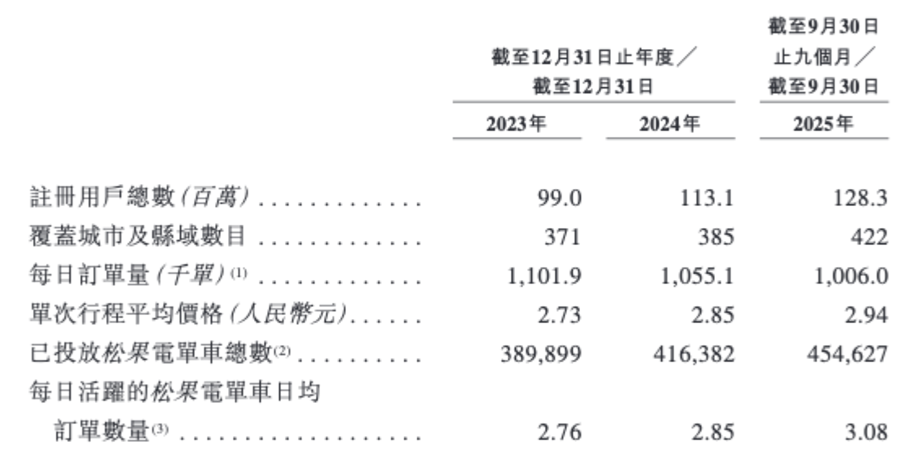 松果出行将其归因于“经营区域组合的战略优化”,但市场普遍认为,这实则是下沉市场饱和、竞争加剧导致的增长瓶颈。截至2025年9月30日,公司在全国422个市县投放45.46万辆电单车,注册用户达1.28亿,但用户增长并未转化为订单增长,反映出用户活跃度与粘性的持续走低。