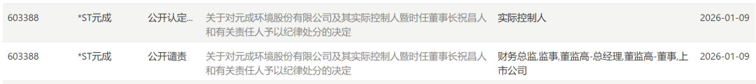 1月9日晚间,上交所官网也披露了对元成股份及其实际控制人暨时任董事长祝昌人和有关责任人予以纪律处分的决定。