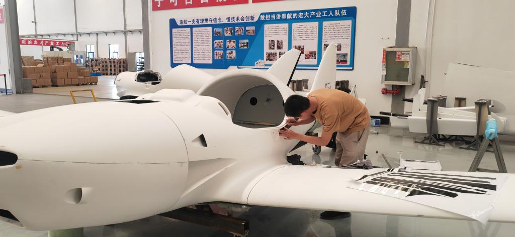 在弥勒浩翔科技有限公司的生产车间,工人正在组装飞机。新华社记者浦超摄