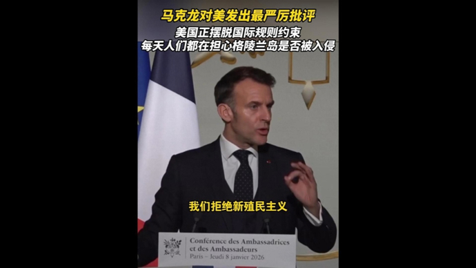 马克龙在讲话中说,当前国际形势面临失序风险,多边机制运行受阻。他严厉谴责当前国际关系中蔓延的“新帝国主义”与“新殖民主义”,提到美国强行控制委内瑞拉总统马杜罗,并对美国“疏远部分盟友”以及“摆脱国际规则约束”的做法表示遗憾。
