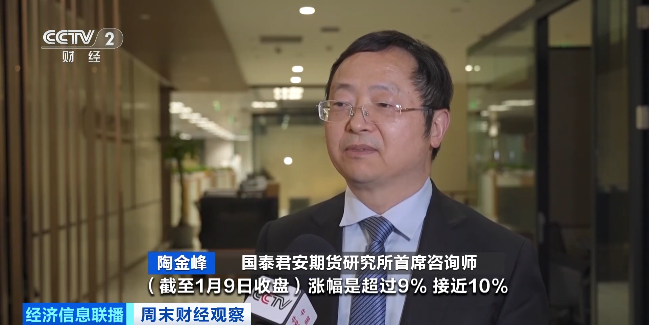 国泰君安期货研究所首席咨询师陶金峰:今年元旦以来,国内的白银期货 ,(截至1月9日收盘)目前涨幅是超过9%,接近10%,而且(1月7日)再创上市以来的新高。国际的白银期货也是再创上市以来新高,整体上还是在高位的、偏强的运行状态。
