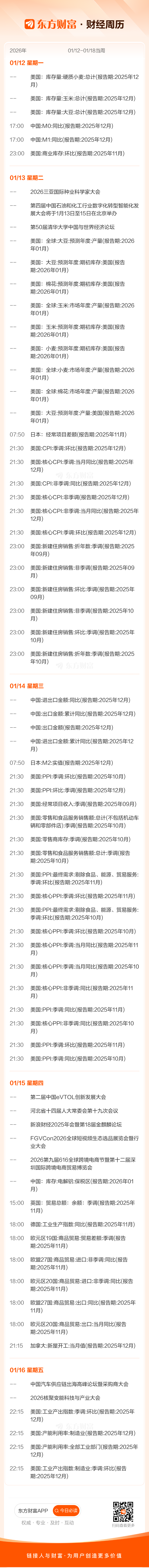 下周大事件(1月12日至1月18日)