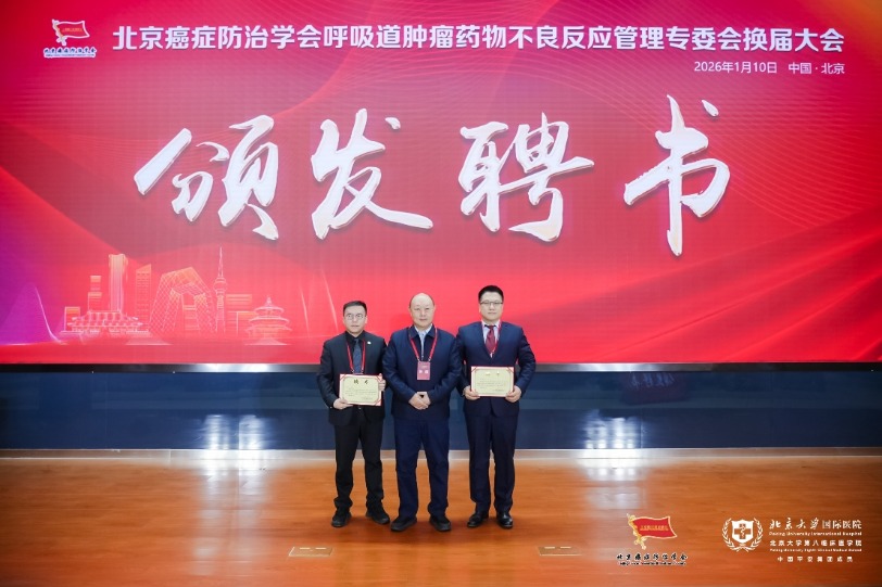 为促进呼吸道肿瘤药物不良反应防治领域的学术交流和临床实践,1月10日,北京癌症防治学会呼吸道肿瘤药物不良反应管理专委会换届大会暨学术年会在北京大学国际医院召开。国内肿瘤学、外科学、呼吸病学、临床药学、老年医学等多领域顶尖专家学者,通过换届选举与学术研讨相结合的方式,聚焦靶向治疗、免疫治疗及化疗药物在呼吸道肿瘤应用中的不良反应监测和管理策略,分享各领域最新研究成果和临床实践经验。