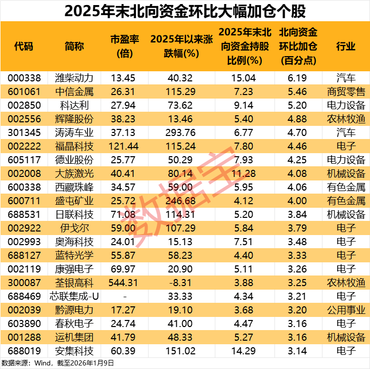 北向资金持仓路径曝光!全球锂电巨头连续7个季度获加仓,商业航天概念股获大面积扫货