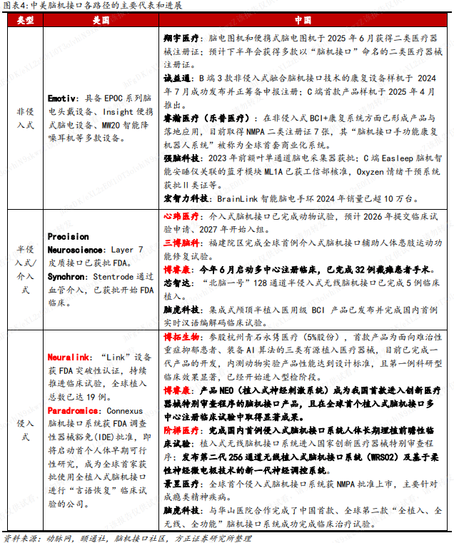 政策上,2025年多部委、多地区密集出台规划引导、支付定价等政策,支持力度空前。临床上,国内侵入式/半侵入式脑机接口临床试验开始爆发,估计今年国内实施脑机接口临床试验数十例,最快预期博睿康明年取得注册证。商业化方面,我们认为整体尚处于早期,预计有望在十年内实现“应用解决方案效果良好,多类解决方案走向成熟商用”的目标,目前处于投资关键期。