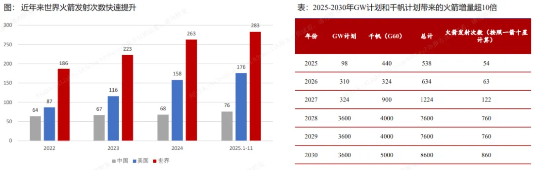 我们预计2026年上半年,我国低轨卫星互联网建设将进入新一轮密集部署期。星网集团与垣信卫星将陆续启动大规模卫星招标工作,旨在加速星座组网进程,抢占轨道与频率资源。这一轮招标不仅意味着卫星需求将迎来显著放量,更将带动从火箭到卫星制造、载荷配套等全产业链的协同发展。我们预计2026年,卫星与火箭两大环节将形成“供需共振”局面,推动整个航天产业进入快速扩张阶段。