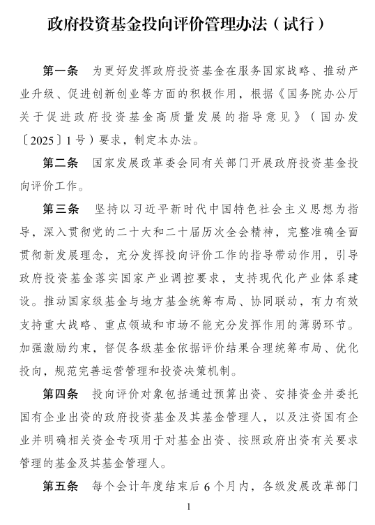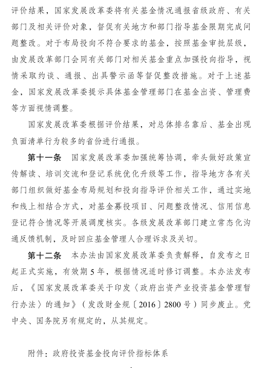 1月12日,国家发展改革委发布《政府投资基金投向评价管理办法(试行)》。