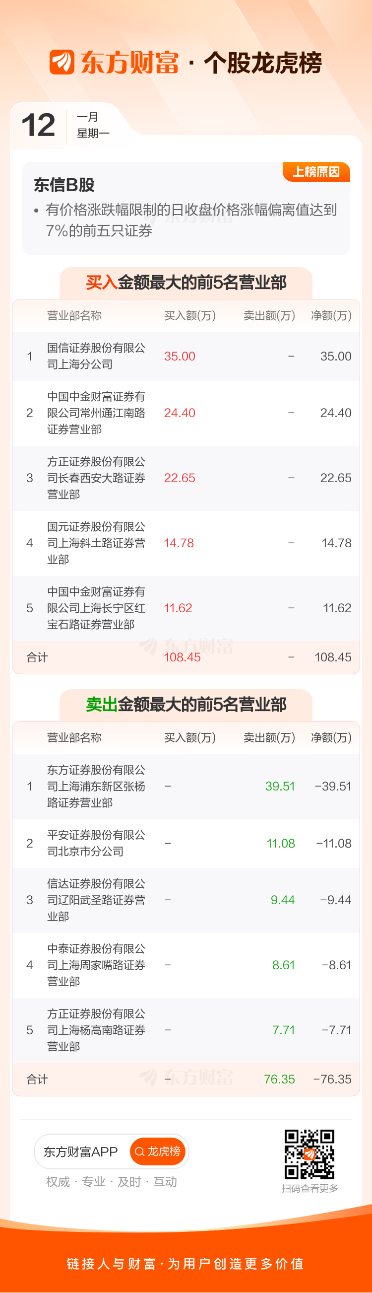 东信B股(900941)龙虎榜数据(01-12)