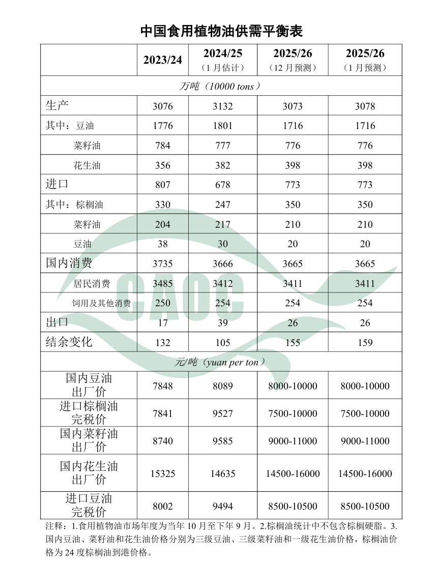 农业农村部:将2025/26年度中国食用植物油产量调增5万吨至3078万吨