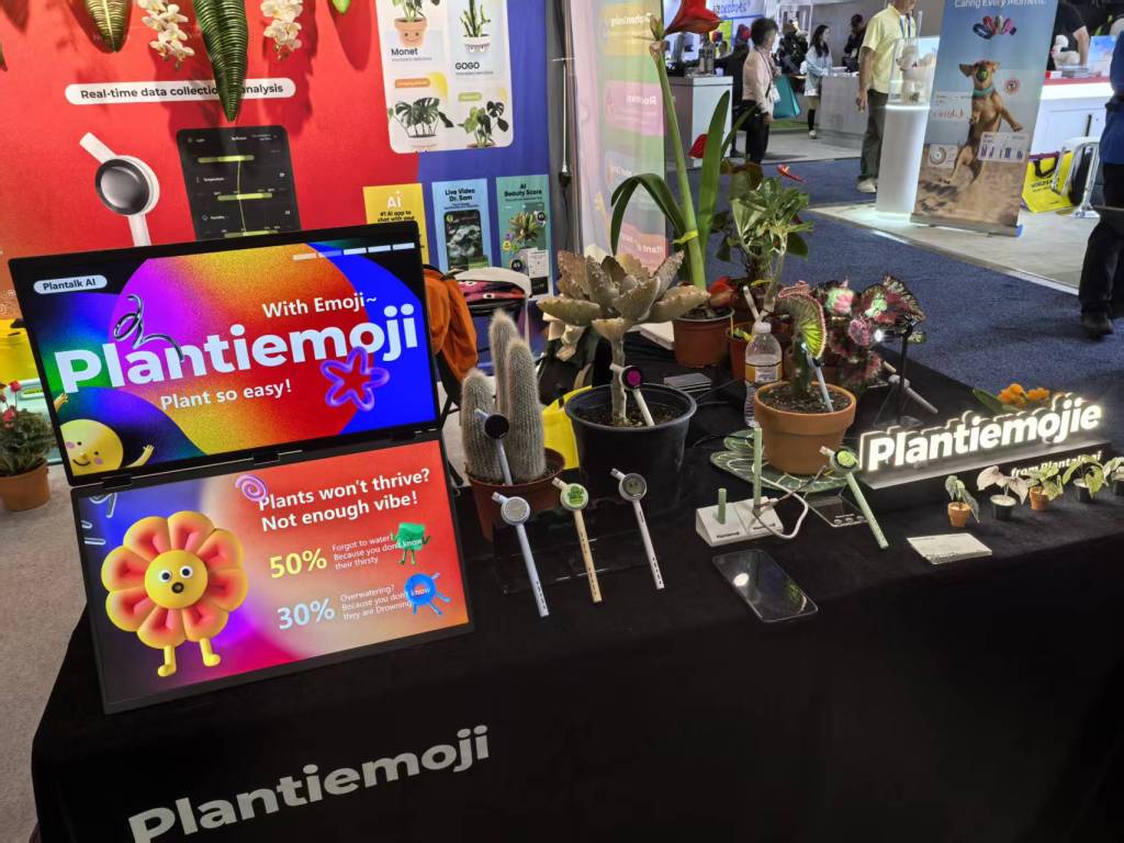 例如,由Plantalk AI团队带来的Plantiemoji,利用AI来理解植物、帮助用户与植物“对话”。据工作人员介绍,该产品背后的模型建构花了九个月,硬件制造部分只花了三个月,目前已开始收集用户反馈。