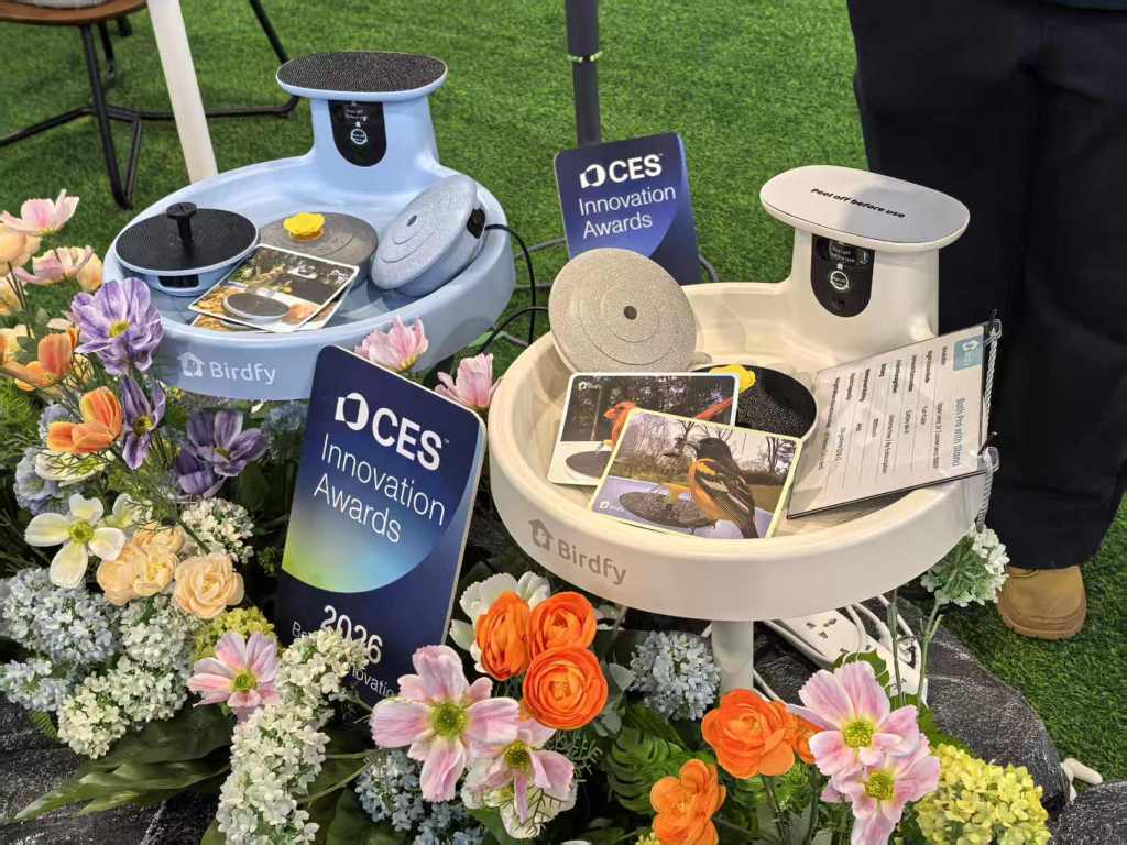 从安全监控设备起家的智能观鸟设备品牌Birdfy则瞄准爱鸟人士的细分市场,结合AI和联网相机技术,让用户通过App实时观察、识别和记录庭院里的鸟类活动。工作人员表示,这是Birdfy第三次出席CES,摊位从小到大、产品也越来越丰富,希望今年打开更大的市场。