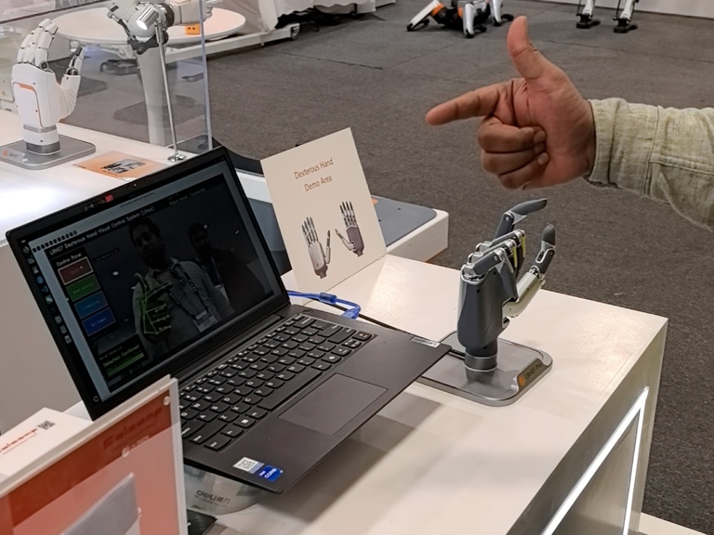 观众体验领益智造旗下能够随时变化动作的灵巧手。澎湃新闻记者拍摄