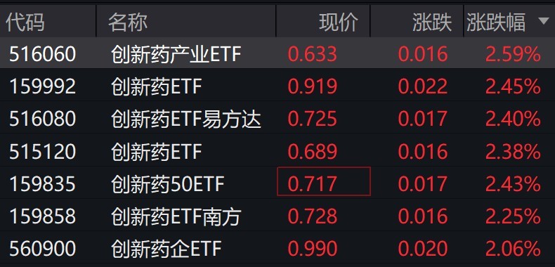 创新药概念股走强,相关ETF涨超2%