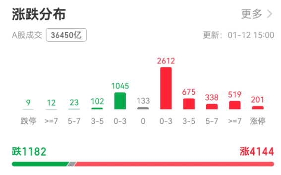 2026年1月12日,A股三大指数集体收涨逾1%,上证指数涨1.09%至4165点,续创逾十年新高。沪、深、京三市全天总成交额达3.6万亿元,刷新了2024年10月8日创下的历史纪录。